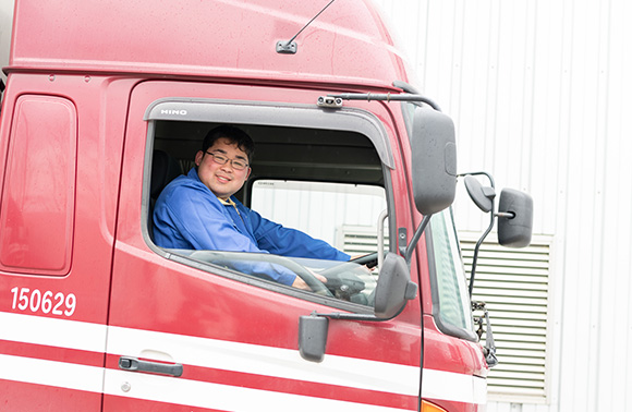 入社後は仕事に慣れていくために倉庫業務を担当しまして、入社3年目からドライバーとして運送業務を行っています。